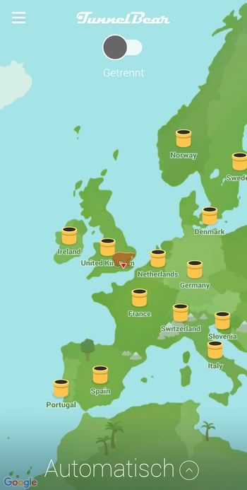 Im Vergleich zu anderen VPNs, die teils Tausende Server in Ländern rund um den Globus zur Verfügung stellen, ist TunnelBear in Bezug auf die Größe und Dichte seines Netzwerkes also weit abgeschlagen.