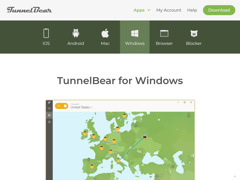 TunnelBear ist ein VPN-Service aus Kanada, der seit 2018 zum US-amerikanischen Cybersecurity-Giganten McAfee gehört. Anwendungen sind für Windows, Mac, Android und iOS verfügbar, Browser-Erweiterungen für Chrome, Firefox und Opera. Für Chrome gibt es zudem das Adblock-Tool "Blocker".