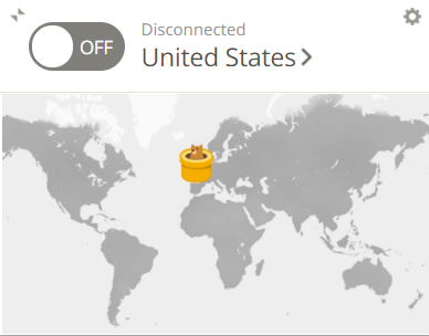 Wenn Sie die Weltkarte einklappen, bleibt nur noch ein Mini-Fenster mit On/Off-Button und Standortauswahl