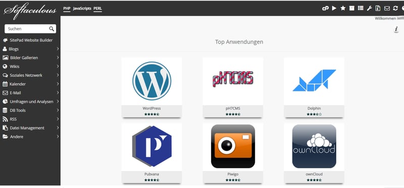 Nutzen Sie Softaculous, um schnell Software wie CMS zu installieren.