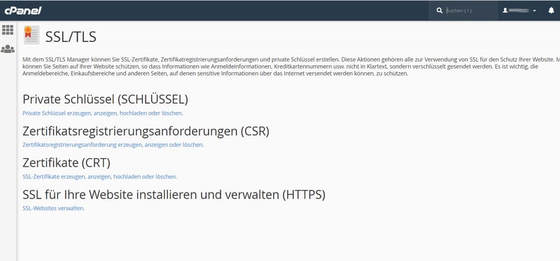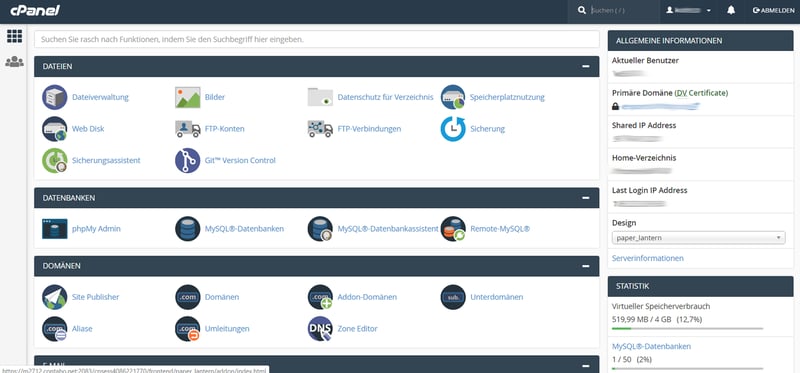 Die eigentliche Hosting-Verwaltung findet im cPanel statt.