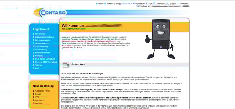 Die My Contabo-Benutzeroberfläche ist nicht mehr zeitgemäß.