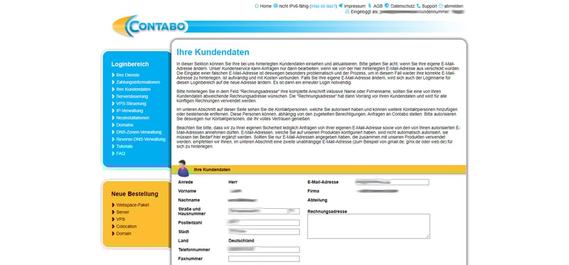 Die Freischaltung unseres Hosting-Pakets erfolgte bei Contabo bereits wenige Minuten nach der Anmeldung. Das klingt vielleicht selbstverständlich, ist es aber nicht: Bei manchen Webhosting-Anbietern, beispielsweise Alfahosting oder dogado, dauerte es Stunden, bis unsere Identität bestätigt war und wir loslegen konnten.