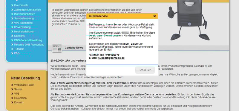 Ein Live-Chat wäre natürlich schön, doch im Support hinterlässt Contabo auch so einen überzeugenden Eindruck.