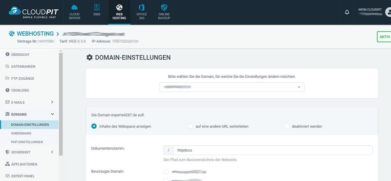 Insgesamt verfügt dogado mit CloudPit über eines der benutzerfreundlichsten Dashboards auf dem Webhosting-Markt.