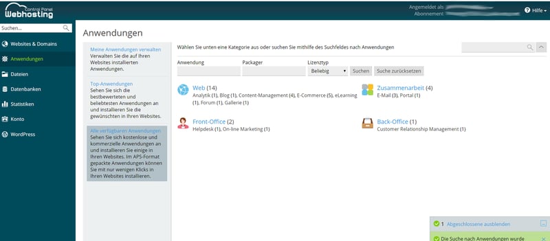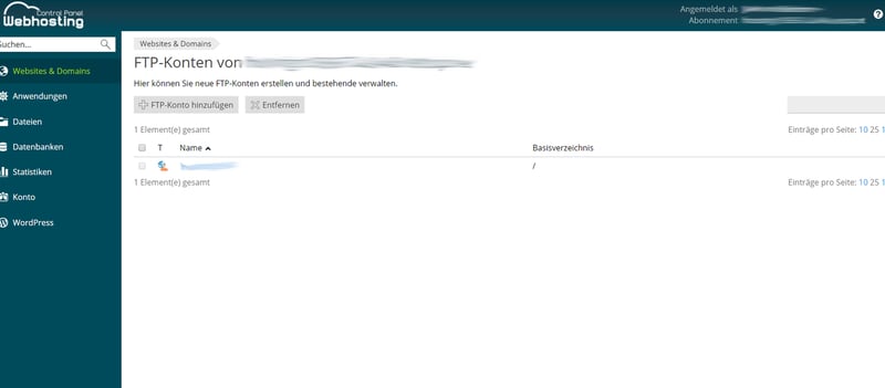 Im Detail verwalten Sie Ihre Websites über das Webhosting Control Panel.
