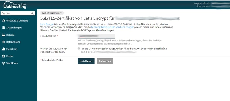 SSL-Zertifikate von Let’s Encrypt stellt netcup für alle Domains und Subdomains unbegrenzt kostenlos zur Verfügung. Sie verwalten sie im Webhosting Control Panel unter „Let’s Encrypt“. Natürlich können Sie auch kostenpflichtig andere SSL-Zertifikate bestellen, was Sie im gleichnamigen Menü im allgemeinen Customer Control Panel erledigen.