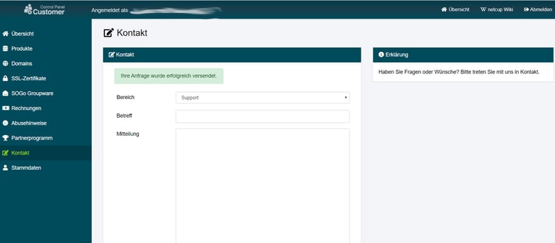 Der Support-Bereich von netcup.