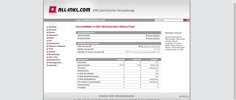 Das Interface von ALL-INKL ist nicht sonderlich modern und könnte ein Facelift vertragen.SSDs nicht in allen Tarifen