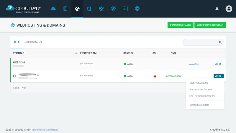 Die CloudPit-Oberfläche macht die vertragliche und technische Verwaltung von Webhosting-Projekten auch für Anfänger unkompliziert.100 % SSD-Power