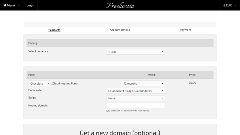 Freehostia ist ein Freemium-Anbieter, der neben kostenpflichtigen Angeboten auch einen begrenzten Gratis-Tarif im Angebot hat. Dieser „Chocolate“-Tarif ist werbefrei und zeitlich unbegrenzt, jedoch mit einigen Einschränkungen verbunden.