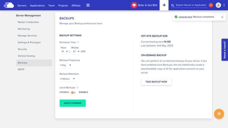 Cloudways bietet umfangreiche Backup-Einstellungen.