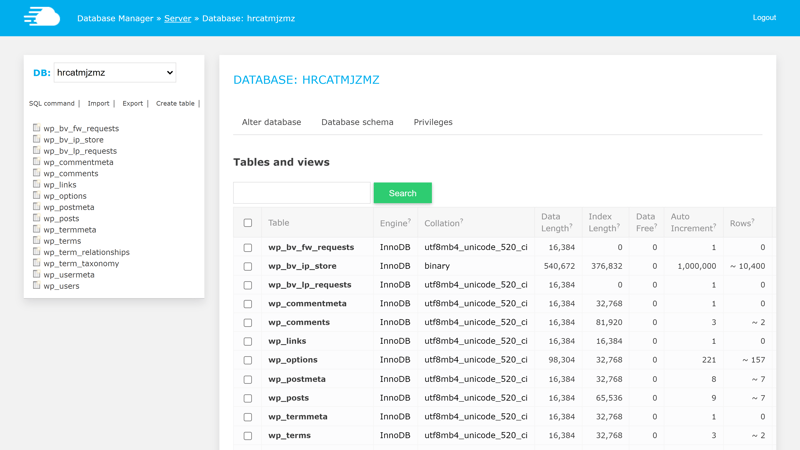 Das Datenbank Management Panel von Cloudways.