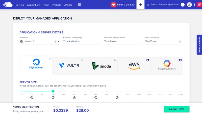 Cloudways ist bis an den Rand mit Funktionen vollgepackt und bietet auch erfahrenen Nutzern viele Konfigurationsmöglichkeiten im Backend, die es bei anderen Hosting-Diensten nicht gibt.Mehrere Infrastruktur-Anbieter zur Auswahl