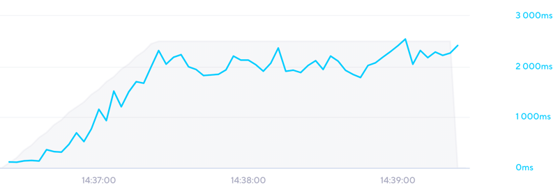 Als viele Nutzer auf die ungecachte Seite auf einmal zugriffen, stieg die Antwortzeit leider etwas an.