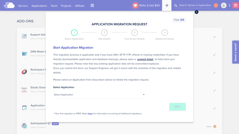 Beim ersten Mal ist die Migration einer Website zu Cloudways über den eingebauten Migrations-Service kostenlos.