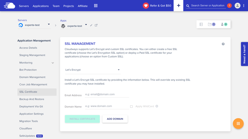 In jedem Cloudways-Tarif gibt es kostenlose SSL-Zertifikate von Let’s Encrypt dazu.