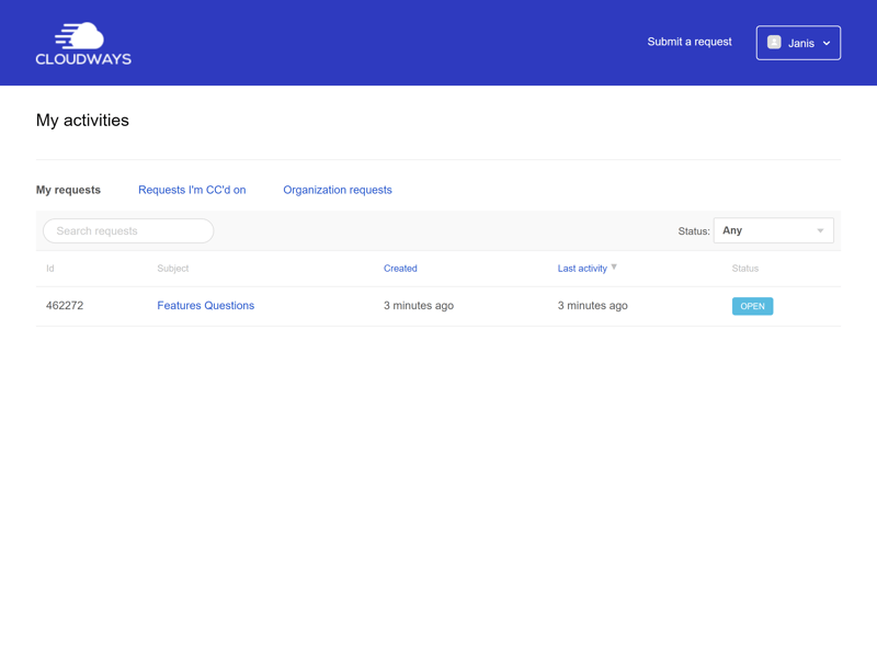 Wir warteten nie länger als ein paar Minuten auf Antworten vom Cloudways-Support.