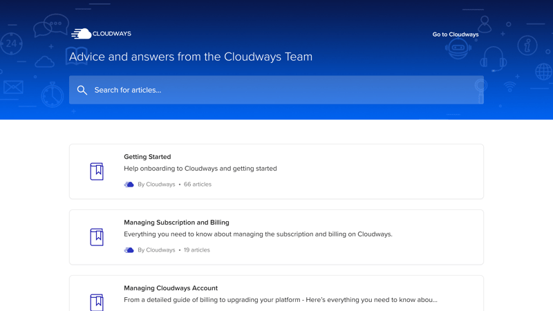 Sie begeben sich lieber selbst auf die Suche nach Antworten auf Ihre Probleme? Natürlich stellt Cloudways viele praktische Ressourcen dafür bereit. Neben einer gut ausgestatteten Knowledgebase, in der anschauliche Artikel mit Screenshots und Hyperlinks warten, finden Sie auf der Cloudways-Website auch E-Books, Webinare und einen Blog.