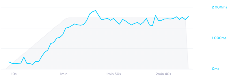 Im Lasttest ohne Caching kam es zu etwas längeren Antwortzeiten.