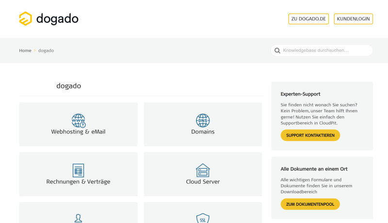 In der Knowledge-Base von dogado finden Sie zahlreiche Hilfeartikel.