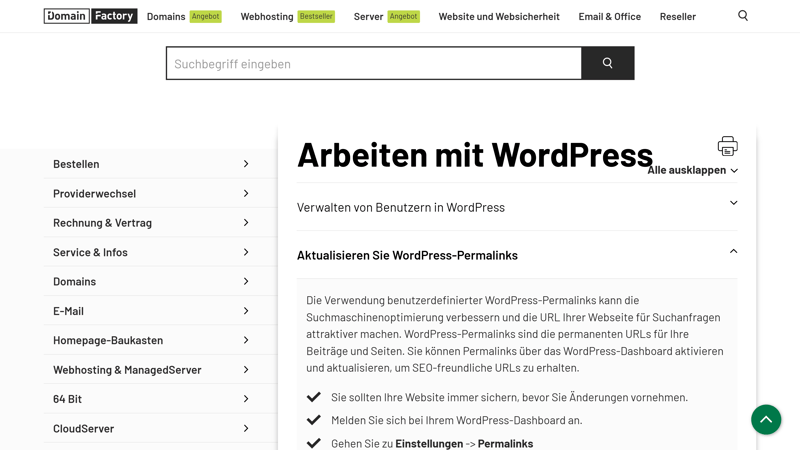 Das Hilfecenter von DomainFactory.