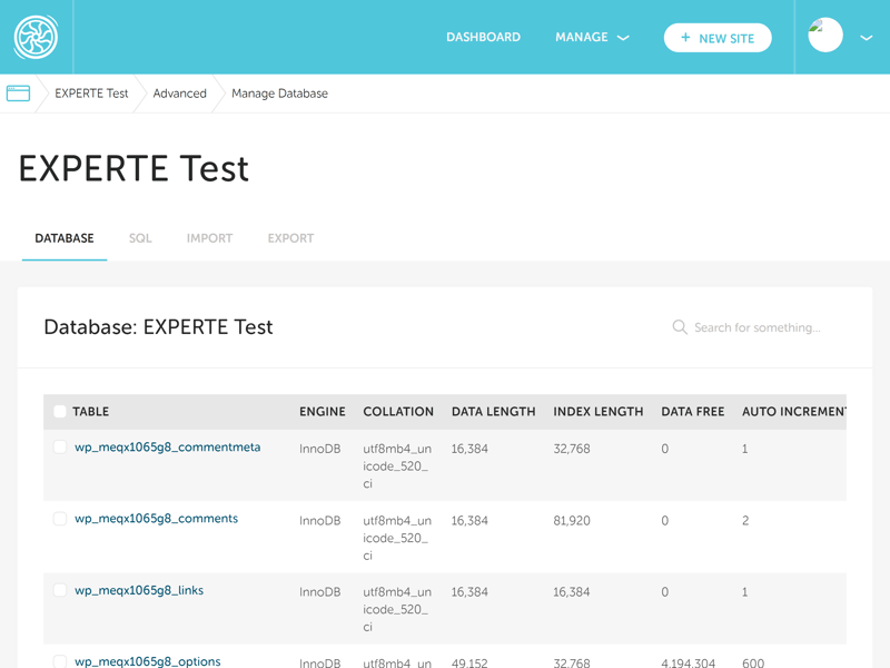Beim Webserver setzt Flywheel auf Nginx, was für WordPress-Websites als ideale Lösung gilt. Die Datenbanken werden von MySQL gepowert, einer der beliebtesten Datenbank-Lösungen. Sie können pro Seite nur eine Datenbank nutzen.