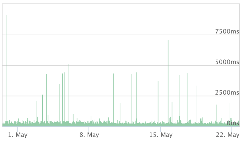 In unserem Test der Antwortgeschwindigkeit von WordPress.com kam es nur selten zu Spitzen.