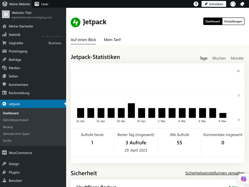 Das Jetpack-Plugin mit erweiterten Funktionen ist vorinstalliert.