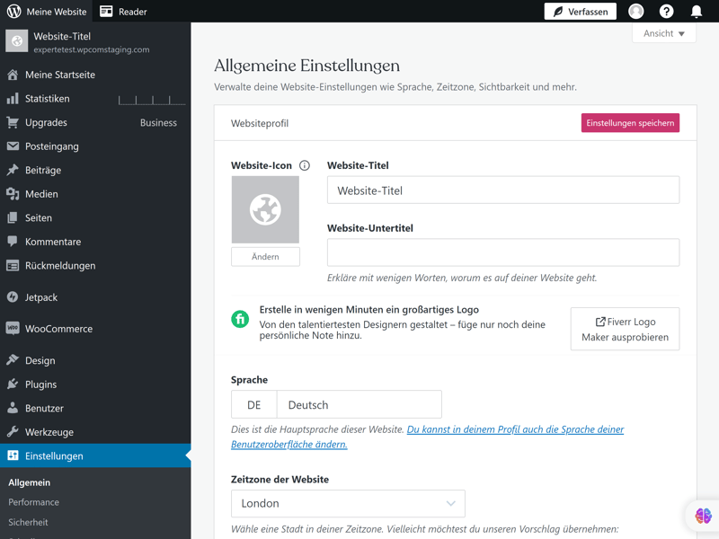 Staging: Sie können eine Testversion Ihrer Website in einer Staging-Umgebung einrichten, um dort Änderungen zu testen, ehe Sie sie auf Ihre aktive Website übertragen.