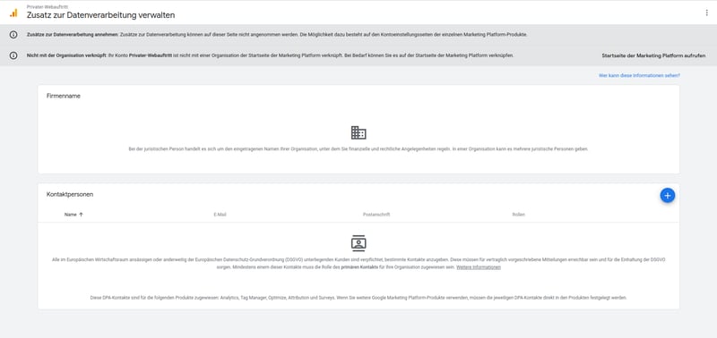 Schließen Sie einen Vertrag zur Auftragsverarbeitung ab. Dazu stellt Ihnen Google bereits eine vorgefertigte Vorlage zur Verfügung. Um diese zu aktivieren, loggen Sie sich bei Ihrem Google Analytics-Konto ein und klicken unten links auf den Link Verwaltung. Anschließend klicken Sie oben links auf Kontoeinstellungen und scrollen danach im rechten Fenstersegment ganz nach unten. Dort klicken Sie auf den Link Details zum Zusatz zur Datenverarbeitung verwalten. Im sodann geöffneten Dialog tragen Sie lediglich die benötigten Kontaktdaten ein und sichern danach den Vertrag.