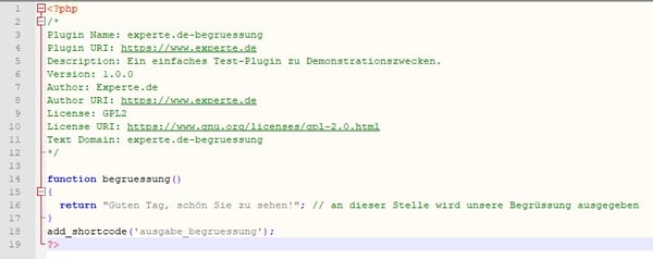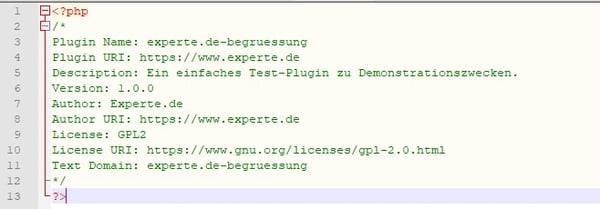 Zusammen mit dem vorher definierten Header sieht unsere Plugin-Datei nun so aus: