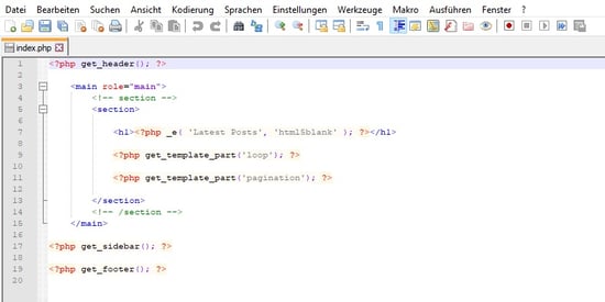 So würde beispielsweise ein einfaches index.php-Template aussehen:
