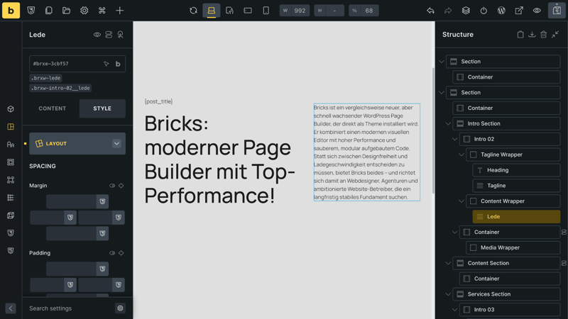 Bricks setzt auf Container, klare Struktur und Performance-Fokus