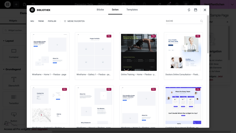 Jede Menge Vorlagen erleichtern die Arbeit in Elementor